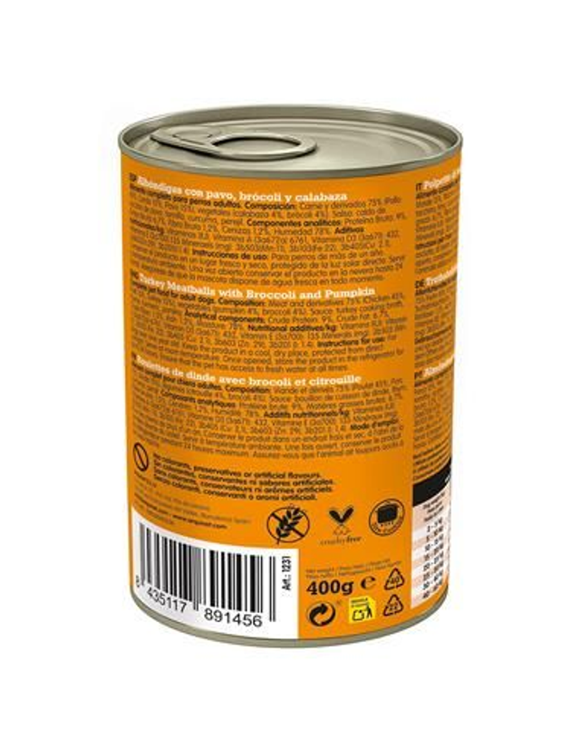 Boulettes de dinde avec du brocoli et de la citrouille - 6 boites x 0.400 Kg = 2.400 Kg -Arquivet / ARQ1231