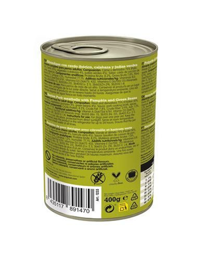 Boulettes de porc à la citrouille et avec des haricots verts - 6 boites x 0.400 Kg = 2.400 Kg - Arquivet / ARQ1233